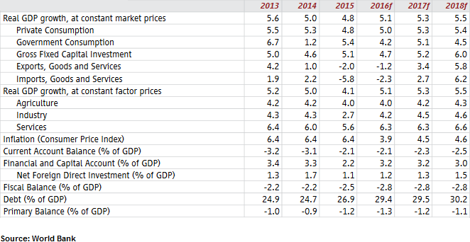 In its latest East Asia and Pacific Economic Update the World Bank maintained its forecast for Indonesia's GDP growth at 5.1 percent (y/y) in 2016 and 5.3 percent (y/y) in 2017, citing Indonesia's strong household consumption, sound monetary policies and higher public investment. These strengths should offset the negative impact of sluggish growth in the advanced economies and stagnant global trade.